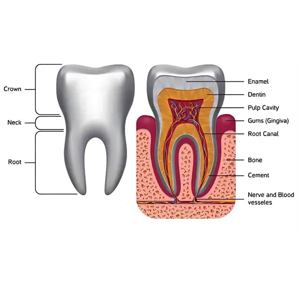 A tooth has three primary parts.