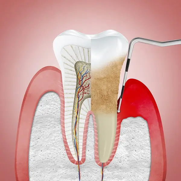 Periodontitis, also known colloquially as tooth loss, is a bacterial disease that attacks the supporting tissues of the teeth (gums, dental ligaments). Pockets of gum develop around the tooth and in these pockets there is tartar stuck to the root of the tooth. The disease affects many adults after the age of 35-40 and is a chronic disease. Over time, the tissues that hold the tooth in place are destroyed and the tooth becomes mobile and can become loose.